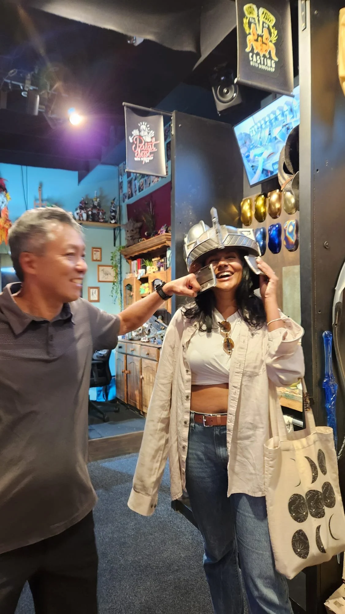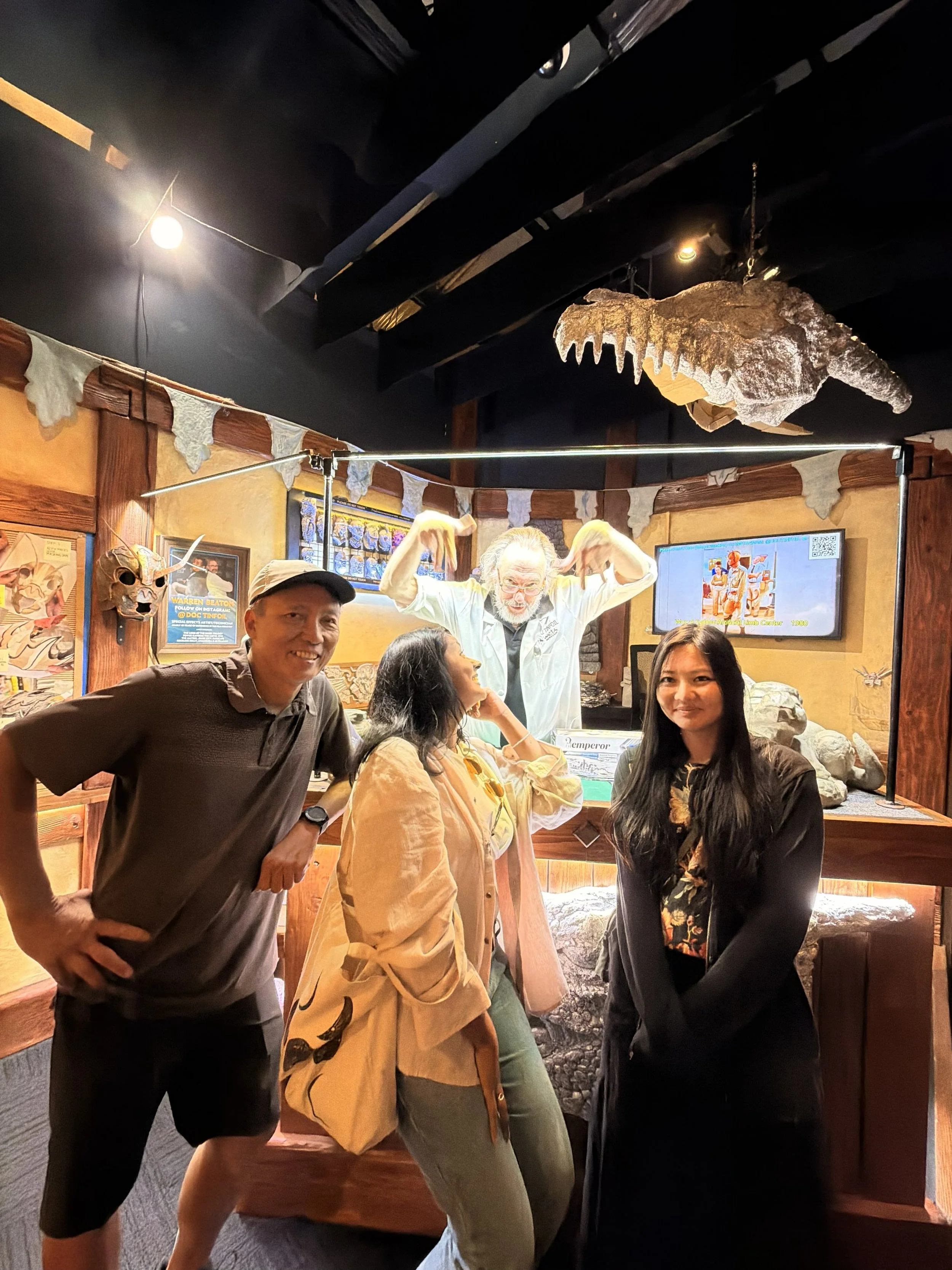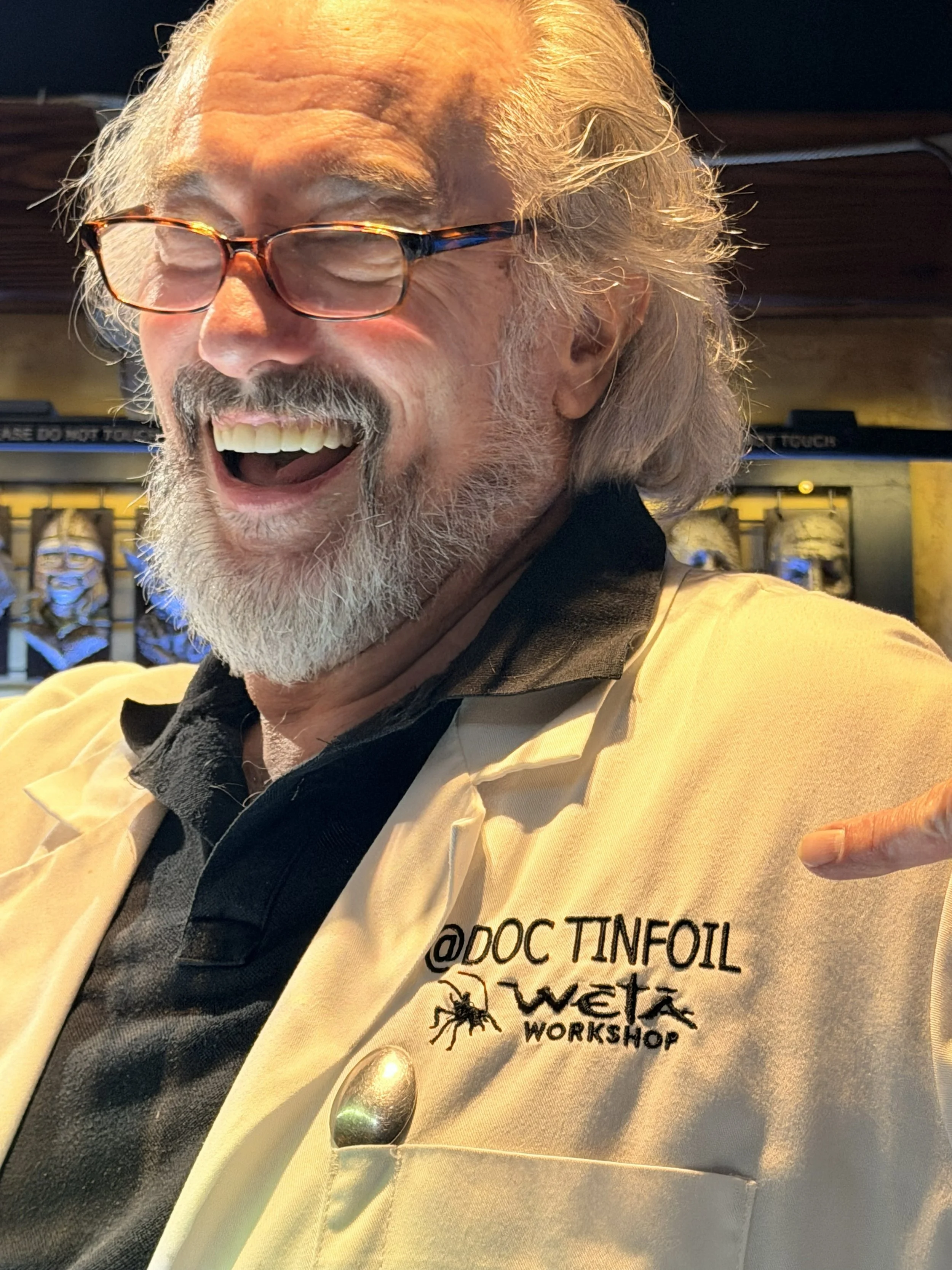 The next room we went into, there was another artist Warren Beaton that was creating Tin Foil Sculptures. It was nothing like I’d ever seen and then they coat it with a substance called Pal Toya which dries like stone, which cuts down the sculpture making by days if not weeks. So cool. Me and Laura made our own little tinfoil creations - Dagger and Plague Doctor.