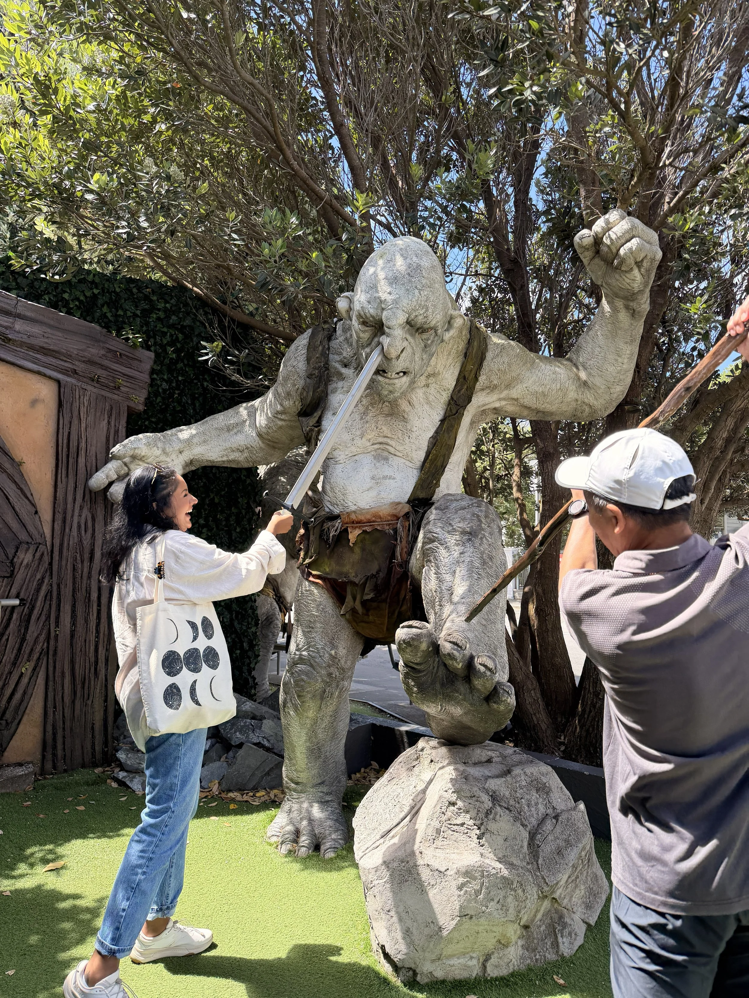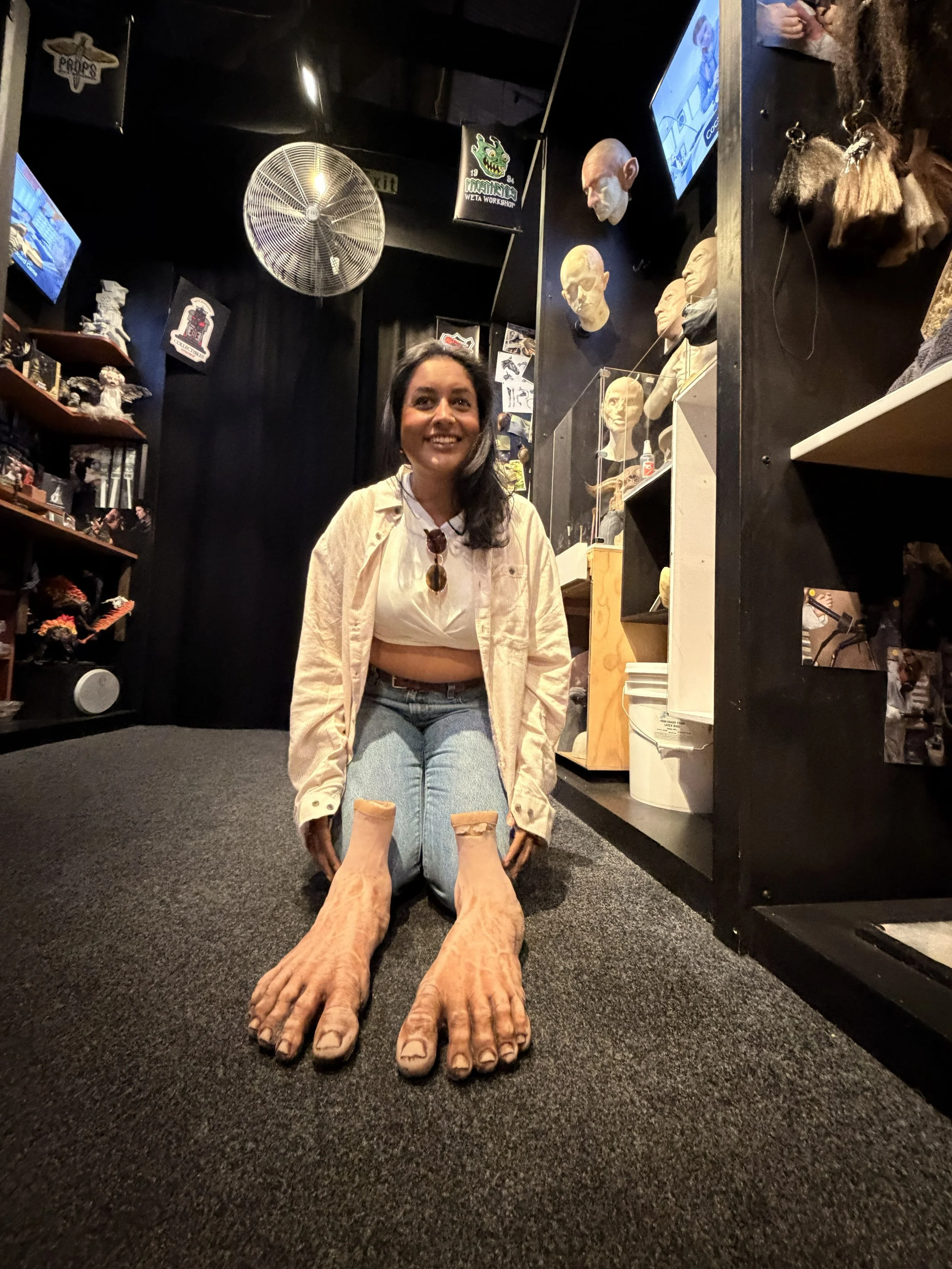 After lunch, Uncle Von took Laura and I to the Weta Workshop for a tour. I thought it would be a little boring and educational like the Harry Potter Studio Tour we did in London, but I actually had fun. While it was educational, they let you touch and feel some of the props real and fake. (Real sword VS its fake replica) Unfortunately for us we were not allowed to take too many photos once inside the workshop apart from a few areas. Where we could it was fun, and for once I felt a little lighter in the last 2 weeks. My inner nerd was so happy. I got to touch the Hobbit Feet shoes that were used in the actual film, we got to put on Gimli’s helmet, an Orc helmet, a Power Ranger helmet, and a Warrior helmet, plus we met some of the artists that work on miniatures and set props/ models.